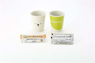 内容:紙コップ風カップ×2個、アゴユズスープ×2包、ほたてスープ×1包、オニオンスープ×1包