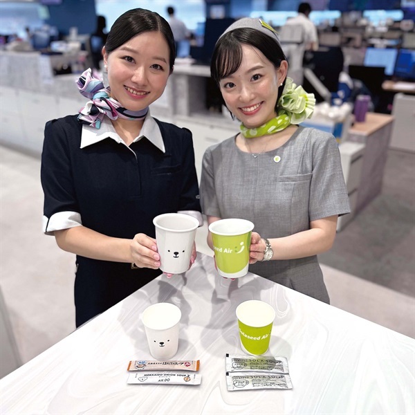 各社機内サービスで人気のスープ(アゴユズスープ・ほたてスープ・オニオンスープ)がセットになって登場しました。
