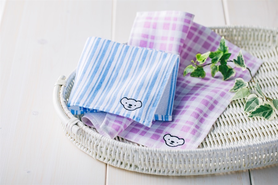 ブルーのストライプとラベンダー色のチェック柄2種類のセット。